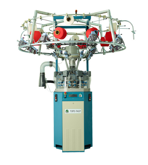 高效8路單面電子提花針織圓機(jī),每路2個選針點,具三功位編織技術(shù)(配置16只選針器)。