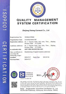 浙江歐騰服飾有限公司位于世界小商品之都-義烏。創(chuàng)立于2015年,是一家專業(yè)生產(chǎn)無縫針織運(yùn)動服飾和內(nèi)衣的工貿(mào)一體企業(yè),擁有自主出口權(quán)。 工廠的占地面積約16000平方米 ,引進(jìn)了大型圣東尼、高騰等多種先進(jìn)的制衣設(shè)備300余臺。月產(chǎn)能可達(dá)90萬件。 歐騰服飾每年投入近百萬資金打樣開發(fā)新產(chǎn)品,有著一支高素質(zhì)設(shè)計、技術(shù)員工隊伍。工廠先后通過了ISO 9001質(zhì)量管理體系認(rèn)證、BSCI認(rèn)證、GRS認(rèn)證、OEKO-TEX國際生態(tài)紡織品認(rèn)證等多項專利檢測報告。可提供OEM&ODM服務(wù)。歐騰服飾以一套完整、科學(xué)的質(zhì)量管理體系,生產(chǎn)的服裝從原材料紗線到成衣,質(zhì)量完全能夠滿足國內(nèi)、國際質(zhì)量要求。獲得了客戶一致好評。工廠先后獲得省科技型企業(yè)、國家高新企業(yè)、義烏市誠信講信用單位、規(guī)上企業(yè)、信用AAA級等榮譽(yù)。